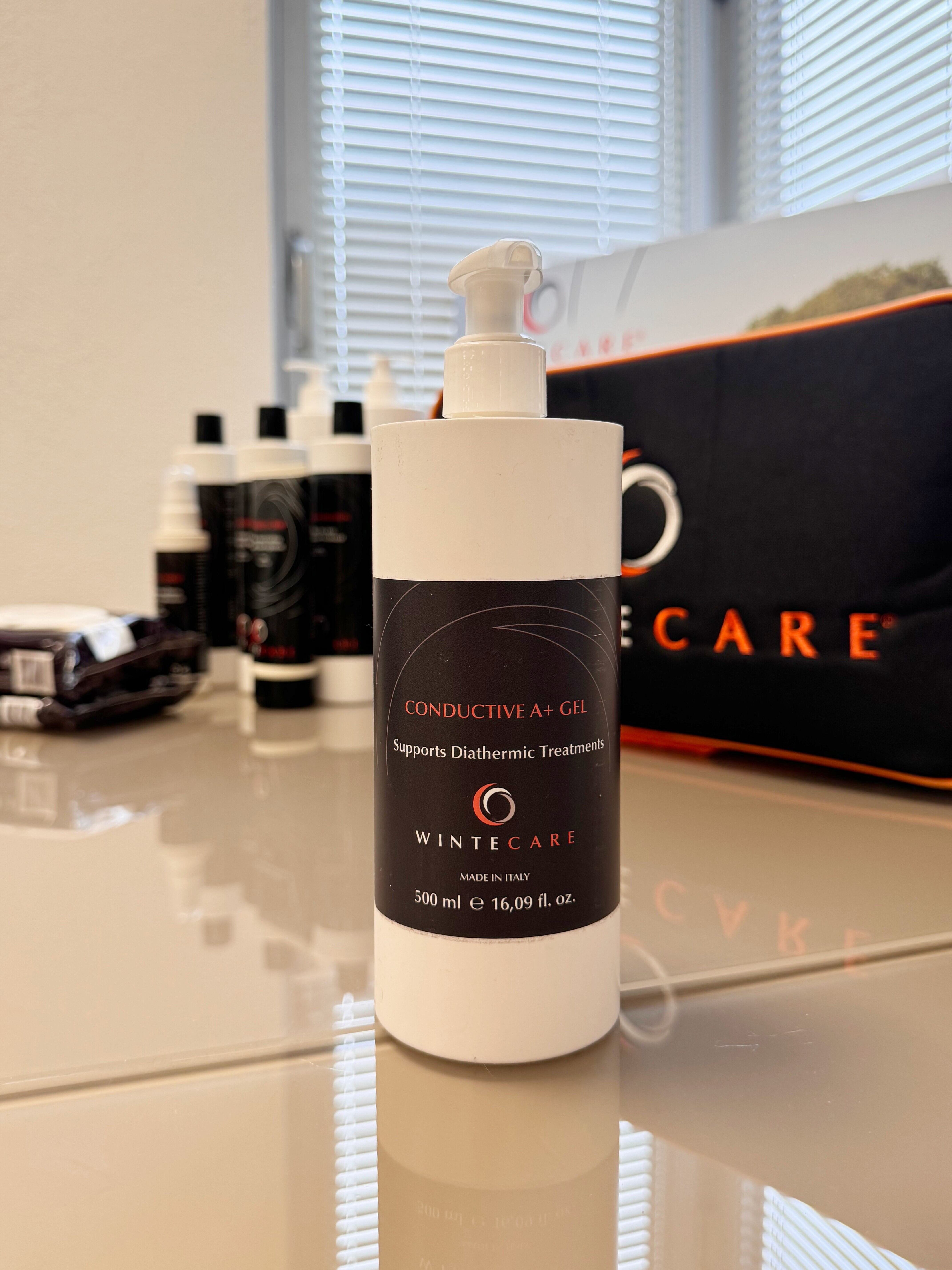 テカールトリートメントの際に使用するゲルで、皮膚の伝導性を向上してより効率的に電気刺激を身体内に送ります。